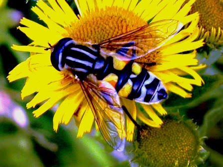 And once in a while the scarcer Helophilus trivittatus can be found, albeit only two records of this solitary, migrant species have been noted. The bad photo below is from 2008 and one in July 2011 didn't linger long enough for the 'dipteria paperazzi' to take a picture!